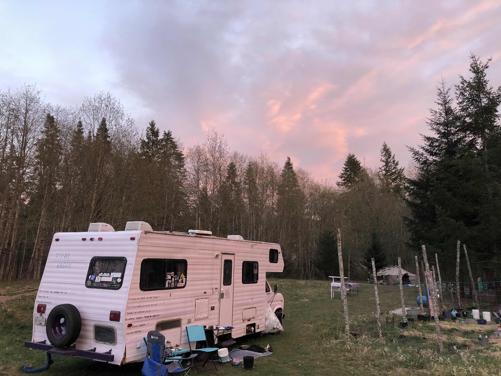 From here I head up the hill to the goat pen, check in with them, sometimes bring them treats. They love sunflower seeds (shell on) and they are good for their furry hair coat. After this I head across to the school bus to let the Ritas and two roosters out. They come flying down the ramp, the roosters as randy as anything start jumping on the hens all over the place, wing dancing for them as they go. Some are okay with it, some are not into their shit and run off. I then close them into their pen and head to the front of the bus where the nest boxes are and collect about 30 eggs from them on the first run. Then I head back to the RV to wash the eggs and prepare them for the farm stand. I have my breakfast then.